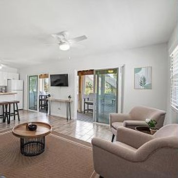 Beautiful Pet friendly vacation house rental offers open modern concept great for families or couples. The updated kitchen is large opening up to the large seating area. The back yard is 3/4 enclosed for your furry friends!